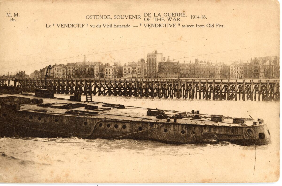 Detail van de gezonken HMS Vindictive in de havengeul van Oostende.