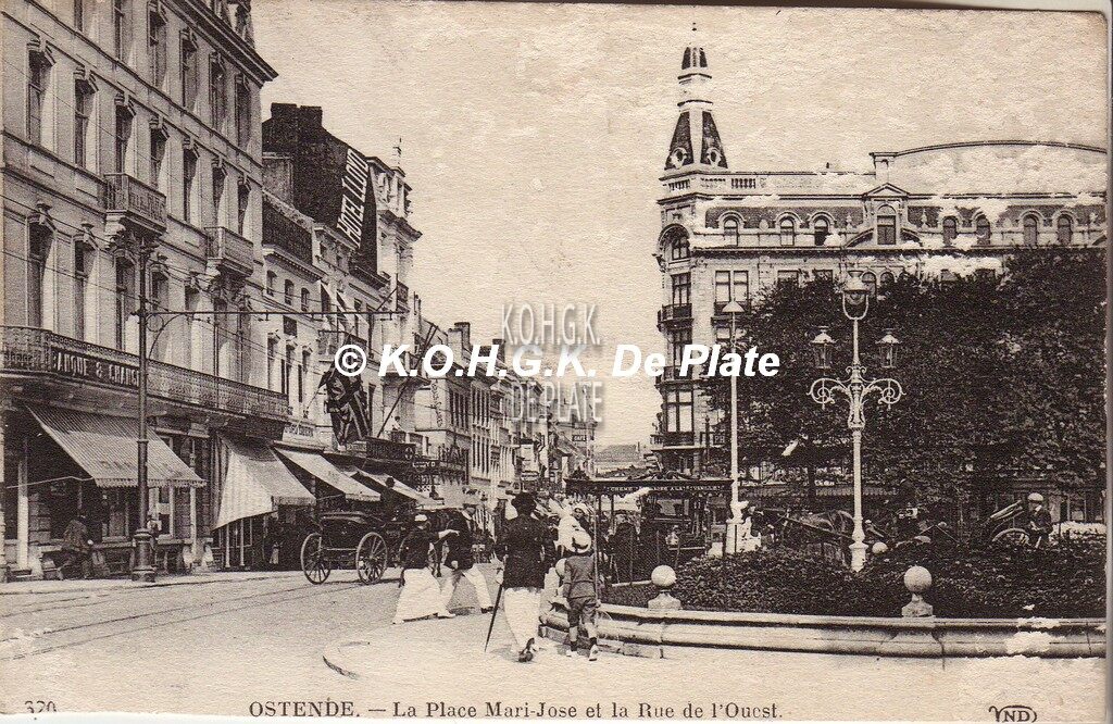 [Neurdein], ND Phot., nr.320. - Ostende - La Place Mari[e]-José et la Rue de l'Ouest. - Het Marie-Joséplein en rechtdoor de Weststraat, nu Adolf Buylstraat. Rechts, het Bouchery-gebouw. Let ook op de sierlijke straatlantaarn