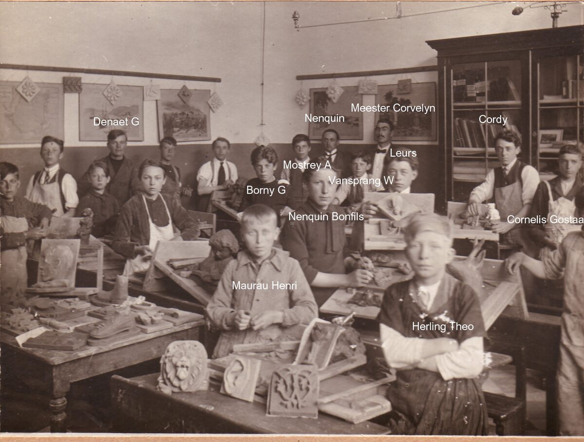 Foto 16.5 x 12.5. Klasfoto Leraar Corvelyn , eveneens op de foto Mijnheer Nenquin en Herling theo