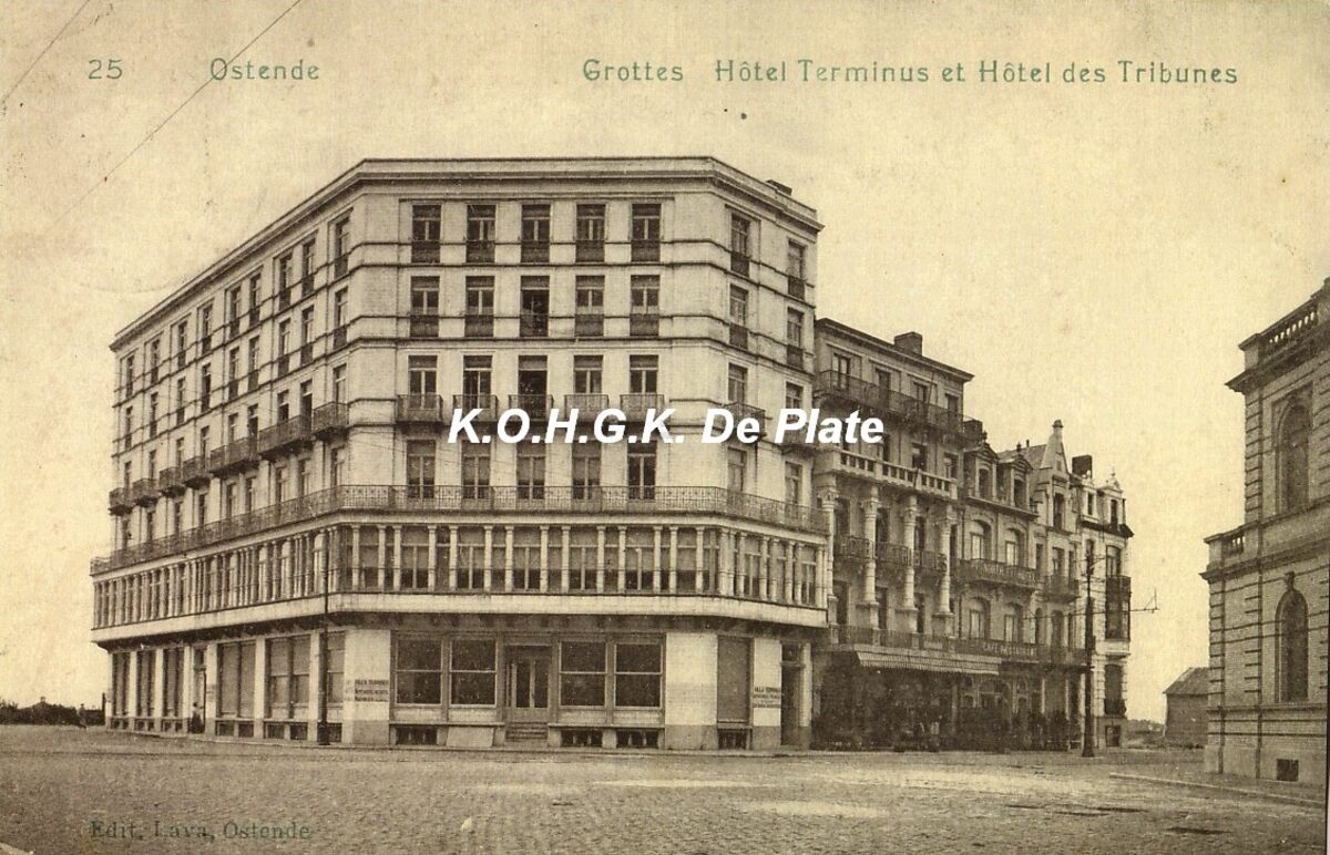 Afdruk. - 19 x 29 cm. - . - Ostende - Grottes. Hôtel Terminus et Hôtel des Tribunes