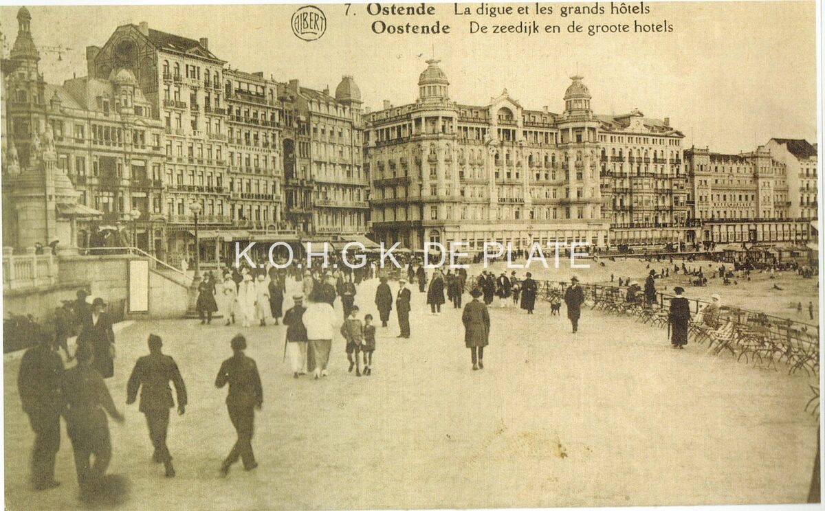Afdruk. - Formaat : 19 x 29 cm. - Albert, N° 7. Ostende - La digue et les grands hôtels. Oostende - De zeedijk en groote hotels. - De Zeedijk ten westen van de Kursaal