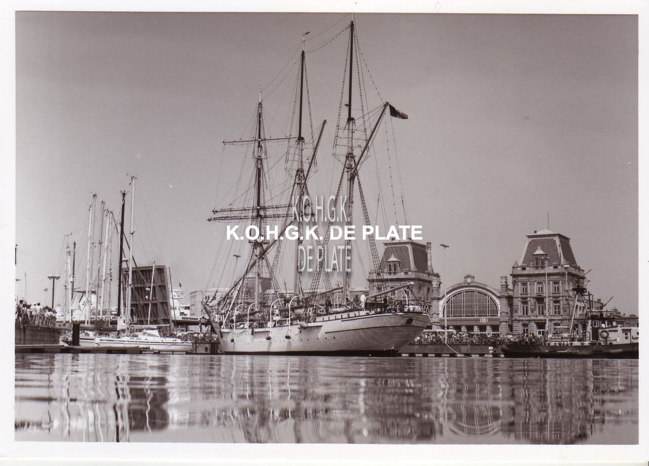 Formaat : 15 x 10 cm.- Het schip lag toen al als museumschip in het tweede handelsdok. Op de achtergrond, het Zeestation