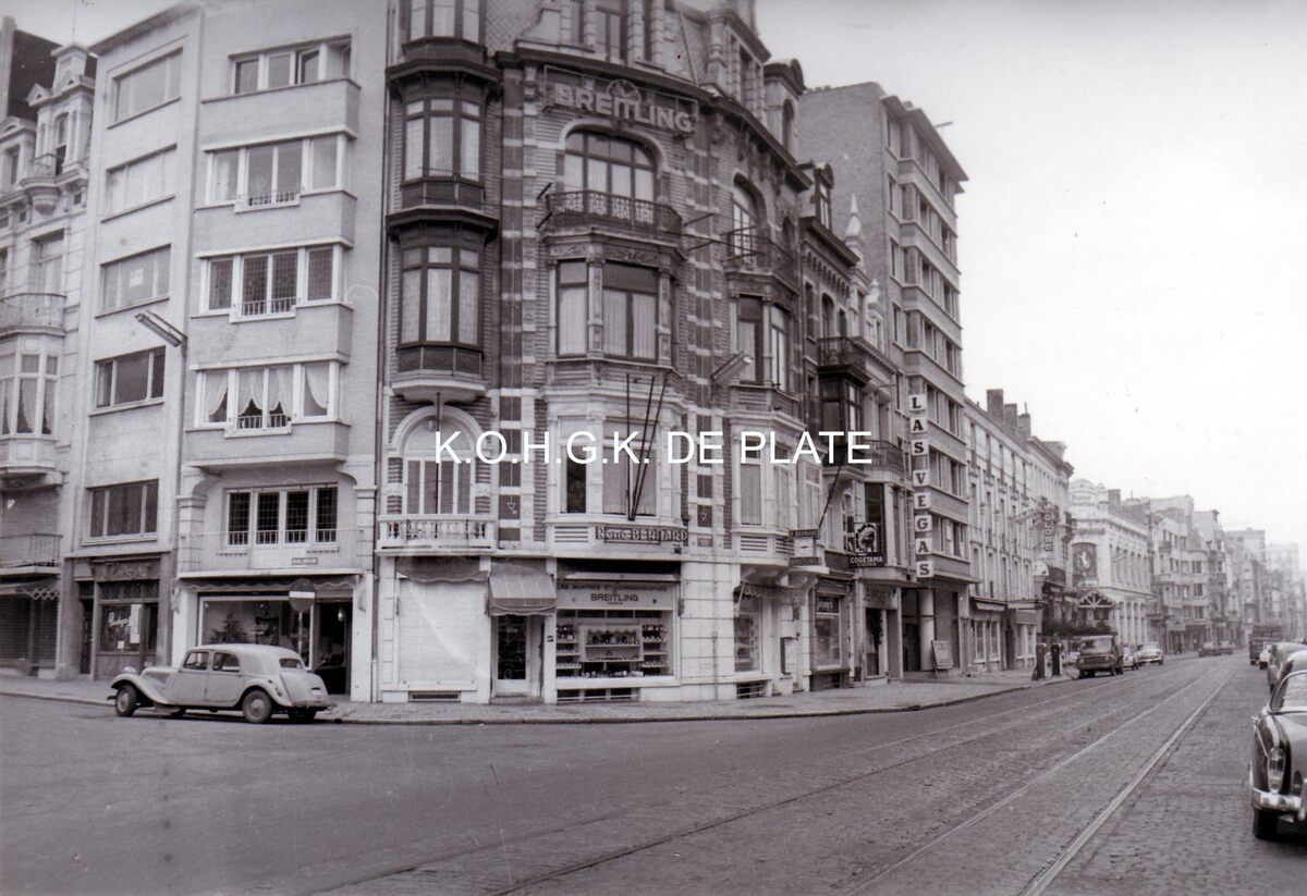 Formaat : 17 x 11.5 cm. - De hoek Van Iseghemlaan en Kursaal-Oosthelling. De tram reed nog door de Van Iseghemlaan
