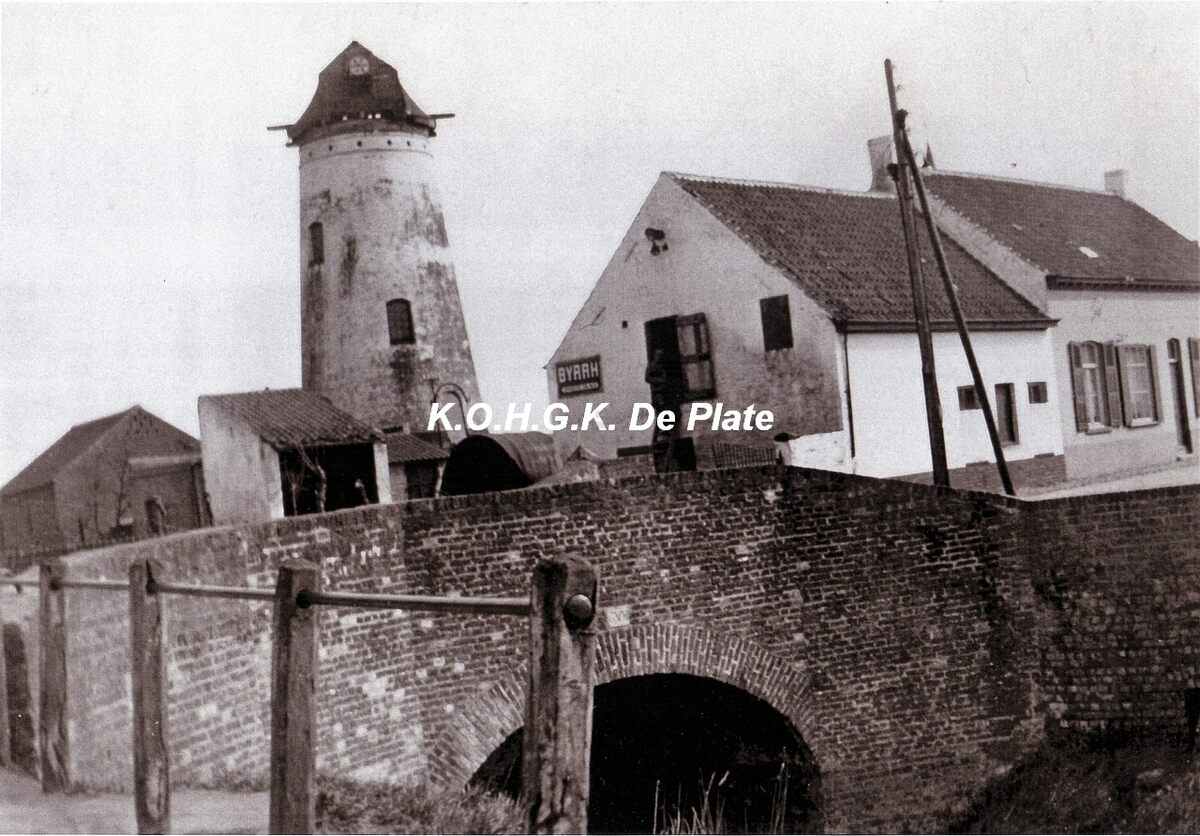 Formaat : 30 x 20 cm. - Het brugje over het provinciegeleed. Op de achtergrond, de molen van Stene