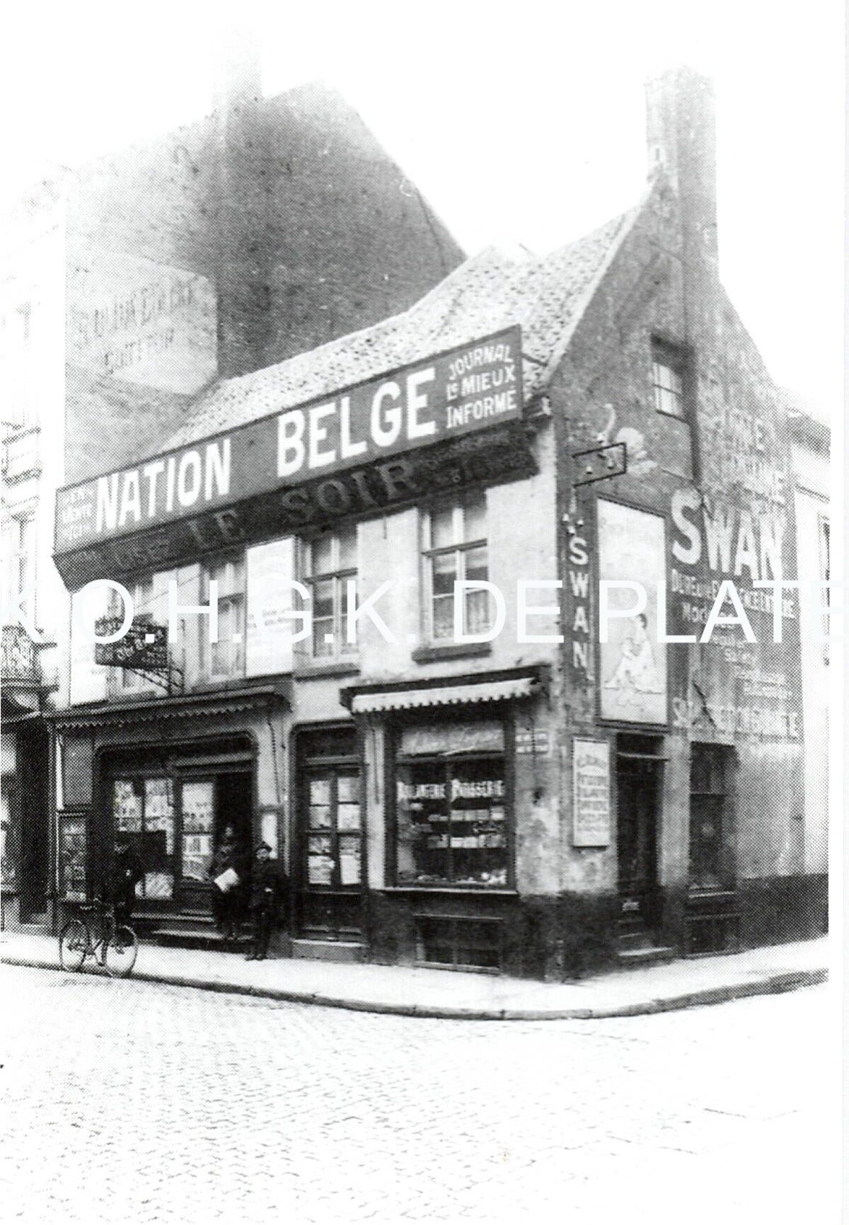 Formaat :10 x 15 cm. - Eerste boekwinkel van Devriendt (rond 1912) op de hoek van de Weststraat (nu Adolf Buylstraat) en de Hertstraat samen met bakkerij-patisserie van Antoine Degraer (ingang in de Hertstraat)