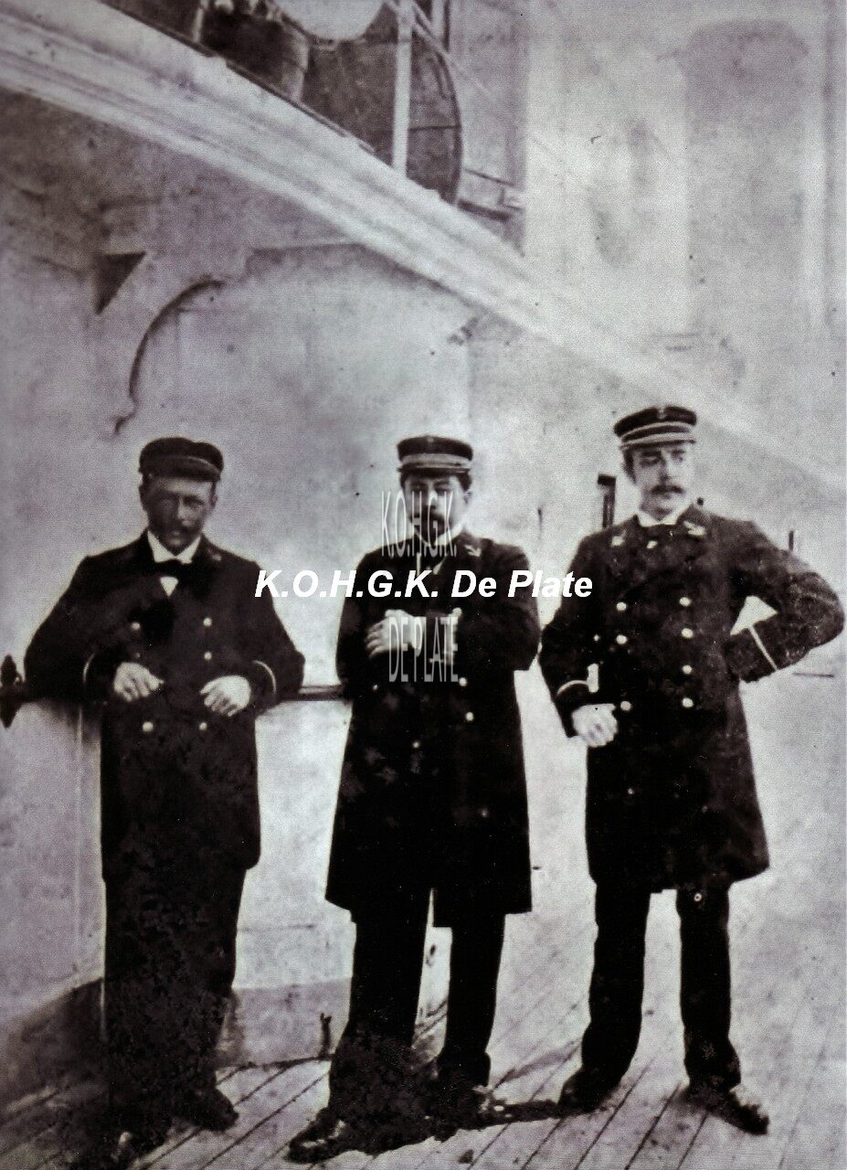 Afdruk, formaat : 21 x 29.5 cm. - Links, luitenant Timmermans E. In het midden, commandant Bastin H. en rechts luitenant Larock