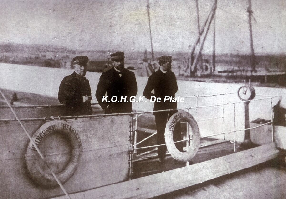 Afdruk, formaat : 29.5 x 21 cm. - Van links naar rechts : De Graeve (luitenant), Dubois G. (commandant) en Laroye (luitenant)