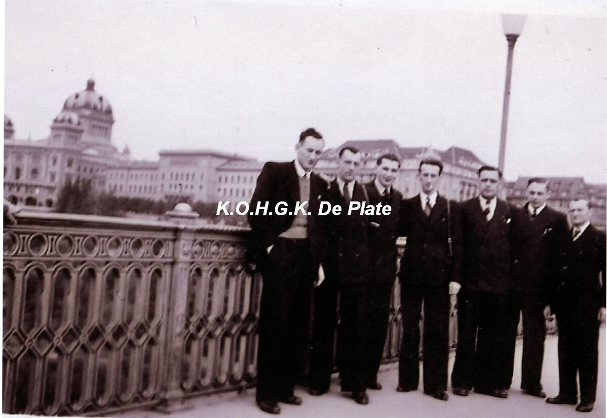 Foto 29.5 X 21 ( kopie). Personeelsleden van de cateringgroep R.L. Peeters op reis , uiterst links Pyson , 3 de persoon van rechts Deschepper G
