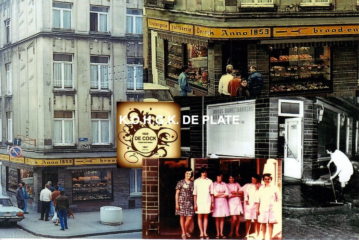 Formaat : 12,5 x 19 cm. - Fotocollage van bakkerij De Cock op de hoek van de Langestraat nr. 57 en de Louisastraat. Nu is bakkerij De Cock in de Langestraat nr. 60 en sedert 2014 volledig vernieuwd.