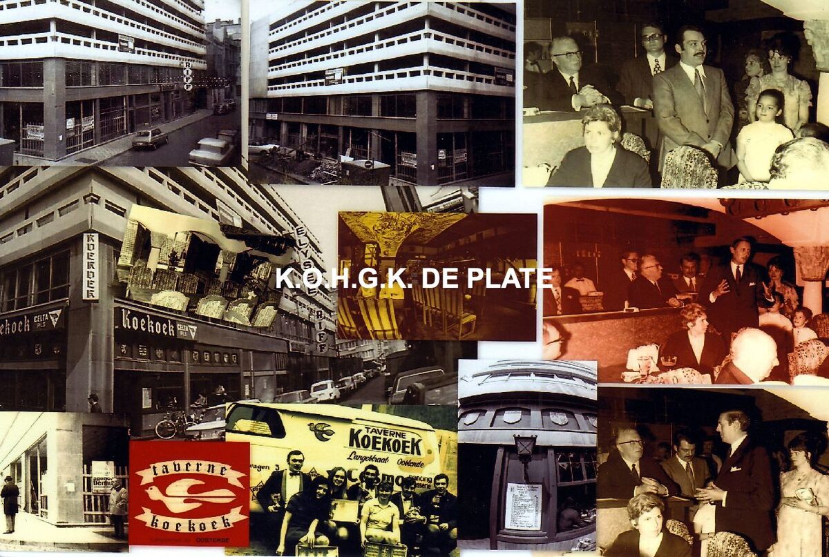 Fotocollage. - Formaat : 12,5 x 19 cm. - Europacentrum en taverne Koekoek op de hoek van de Langestraat en de Christinastraat