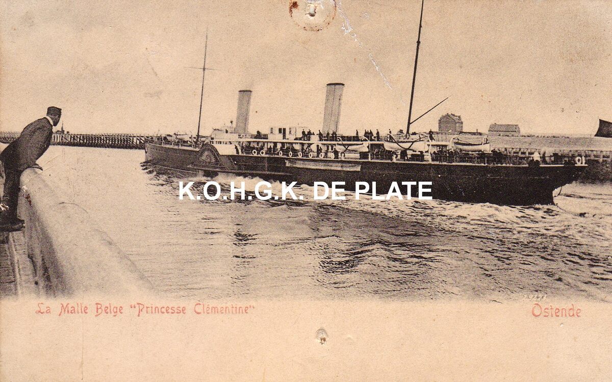 Edit. V.G. [=Victor Grégoire], 42, Avenue du Midi, Bruxelles. - Ostende - La malle Belge "Princesse Clémentine". - De pakketboot "Princesse Clementine" in de havengeul van Oostende.