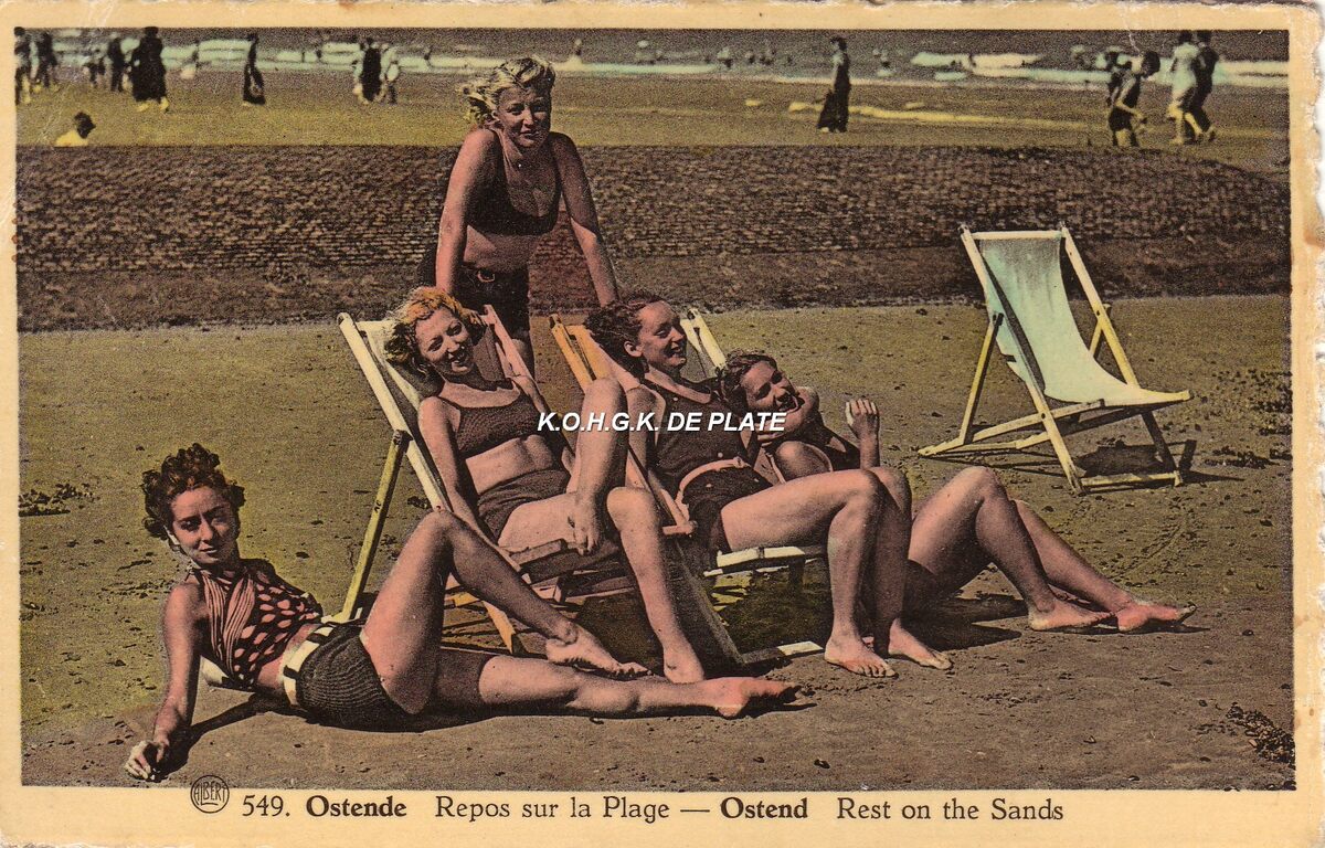 Albert, N° 549. - Ostende - Repos sur la Plage. Ostend - Rest on the Sands. - Bijgekleurde kaart