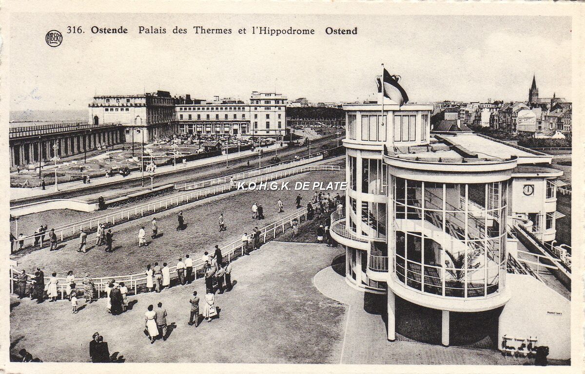 Albert, N° 316. - Ostende - Palais des Thermes et l'Hippodrome. - Links de paddock, nabij de Koningin Astridlaan en vooraan de koninklijke tribune