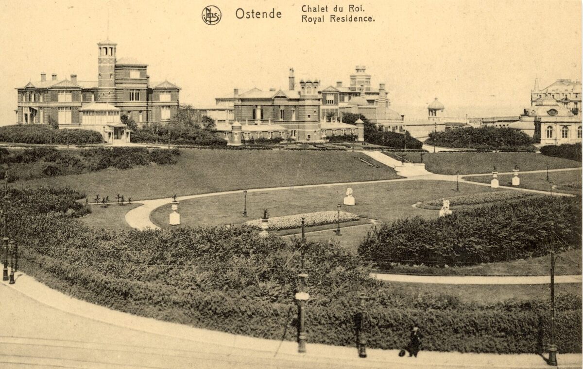 Nels. - Châlet du Roi. - De zuidkant van het Koninklijk Chalet met mooie tuin. Vooraan links, de Krommestraat (huidige Koningin Astridlaan)