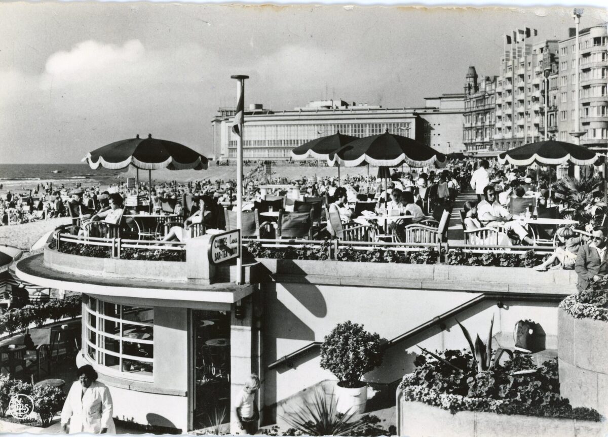 Nels. - Detail van de toegang tot de badinstallaties onder de Albert I-promenade. Op de achtergrond, de westgevel van het vierde Kursaal
