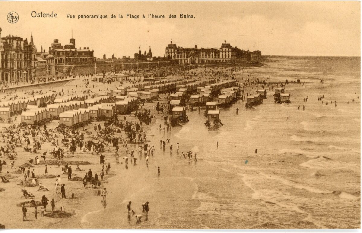Nels. - Ostende - Vue panoramique de la plage à l'heure des bains.