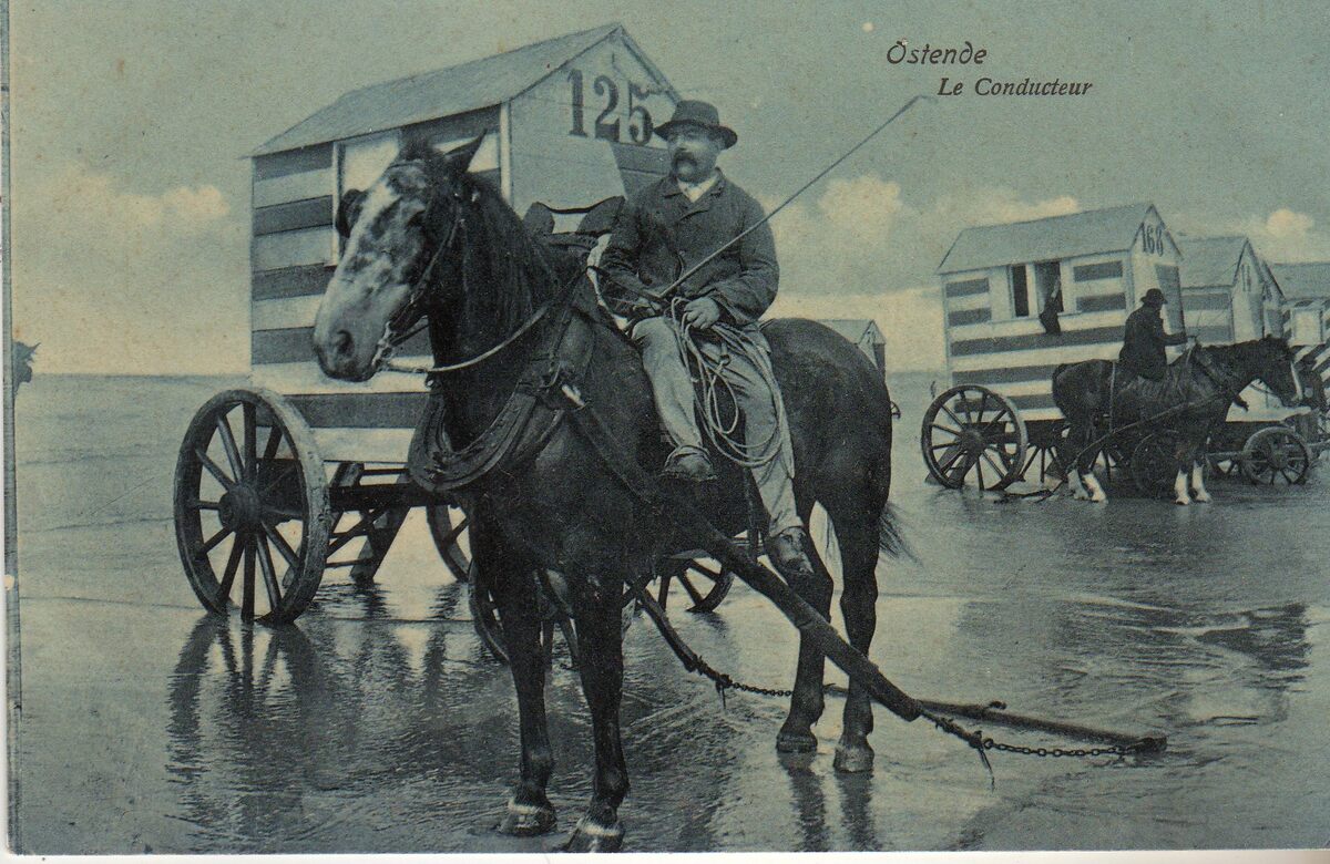 Dr Trenkler. - Ostende - Le conducteur.- Ruiter op paard, die de badkarren in zee trokken