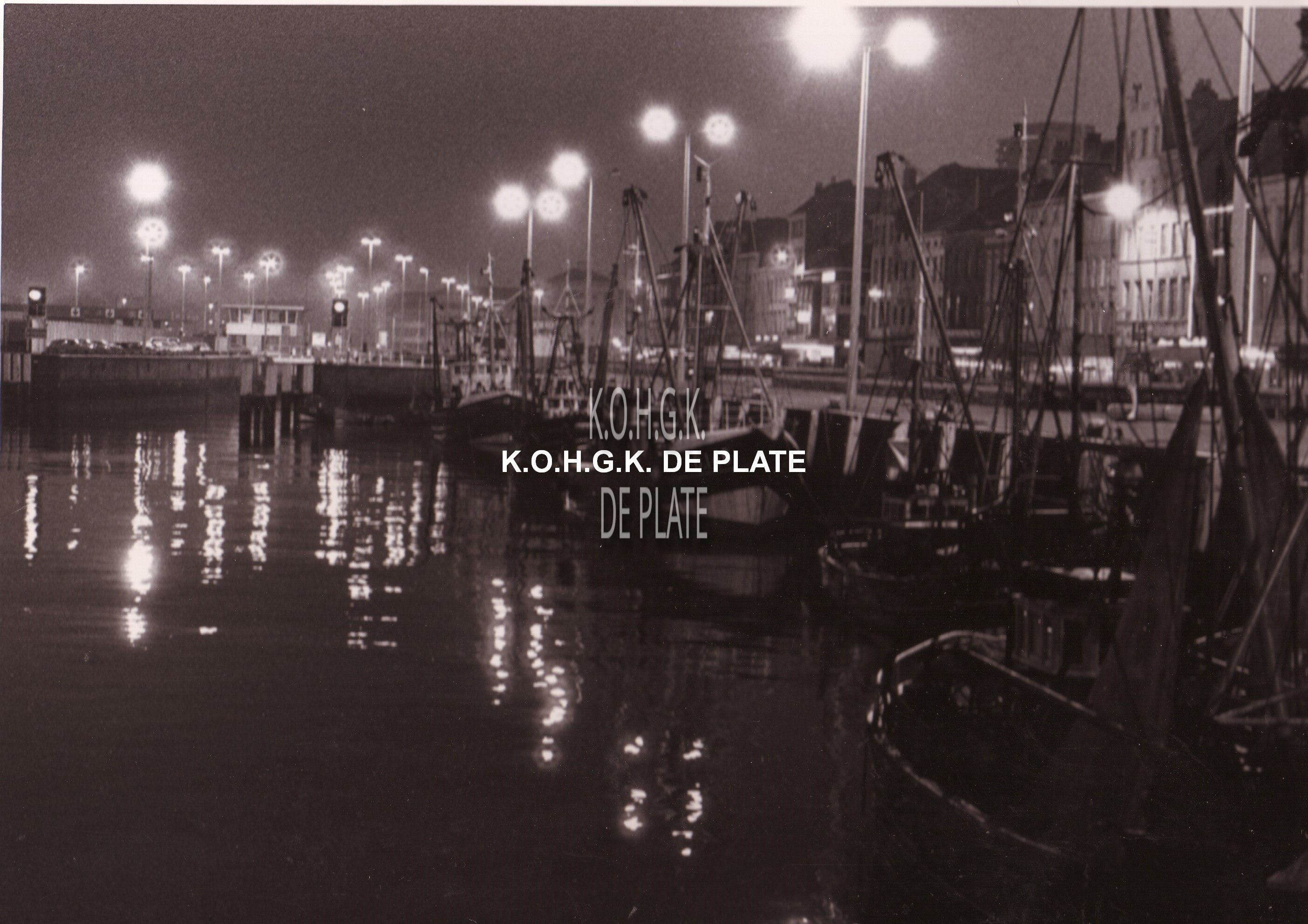 Formaat : 18 x 27 cm. - Vissersvaartuigen in het Montgomerydok. Rechtdoor, de Mercatorsluis die toegang geeft tot de Mercator jachthaven. Rechts, de Visserskaai