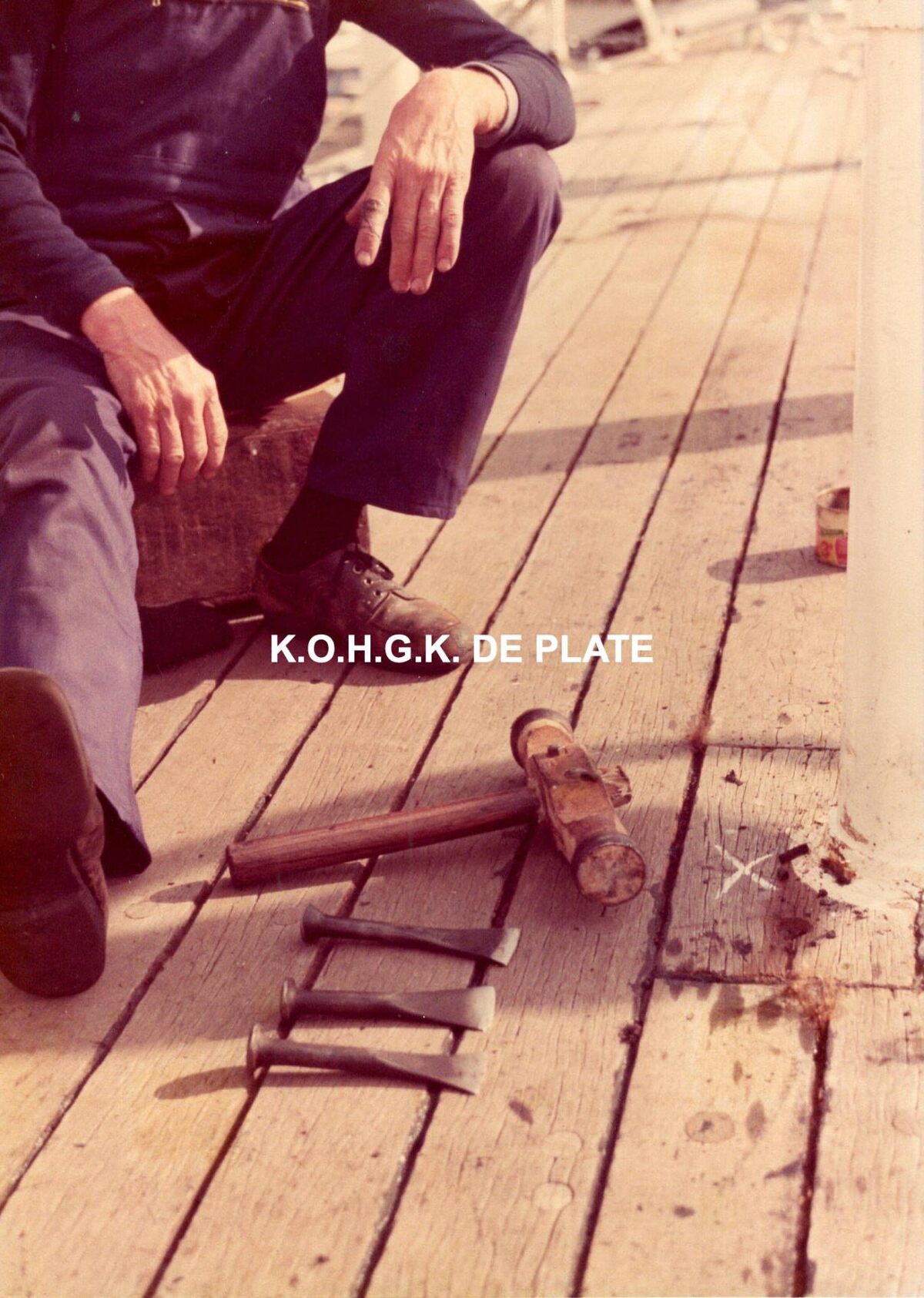 Foto : 17,5 x 12,5 cm. - Een kalfaathamer en drie kalfaatijzers. Maurits Eerebout kalfaat het dek van de "Mercator".
