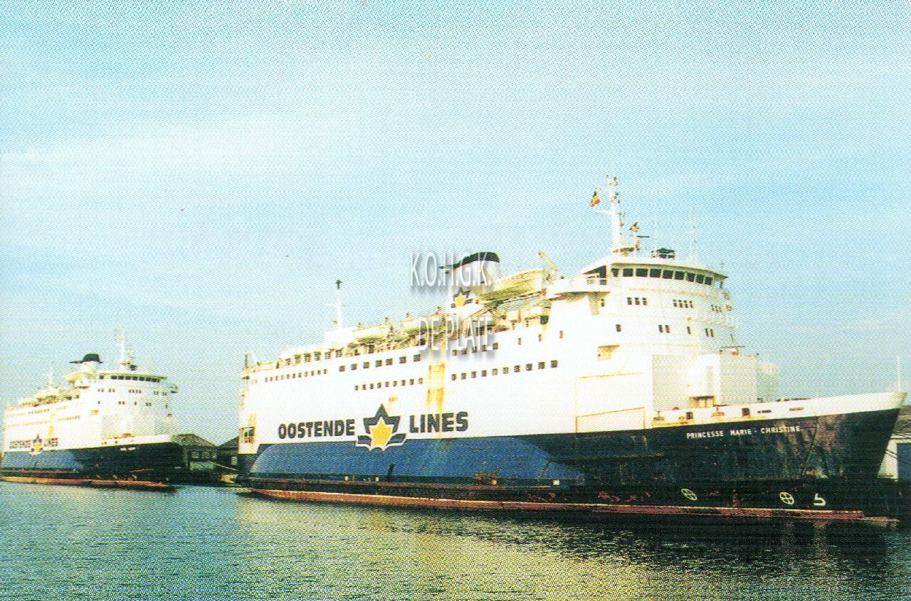 Tropic T 24. - RMT Souvenir Postcard, set N° 3. - De carferry"s gemeerd in de haven van Duinkerke voor verkoop, zomer 1997.