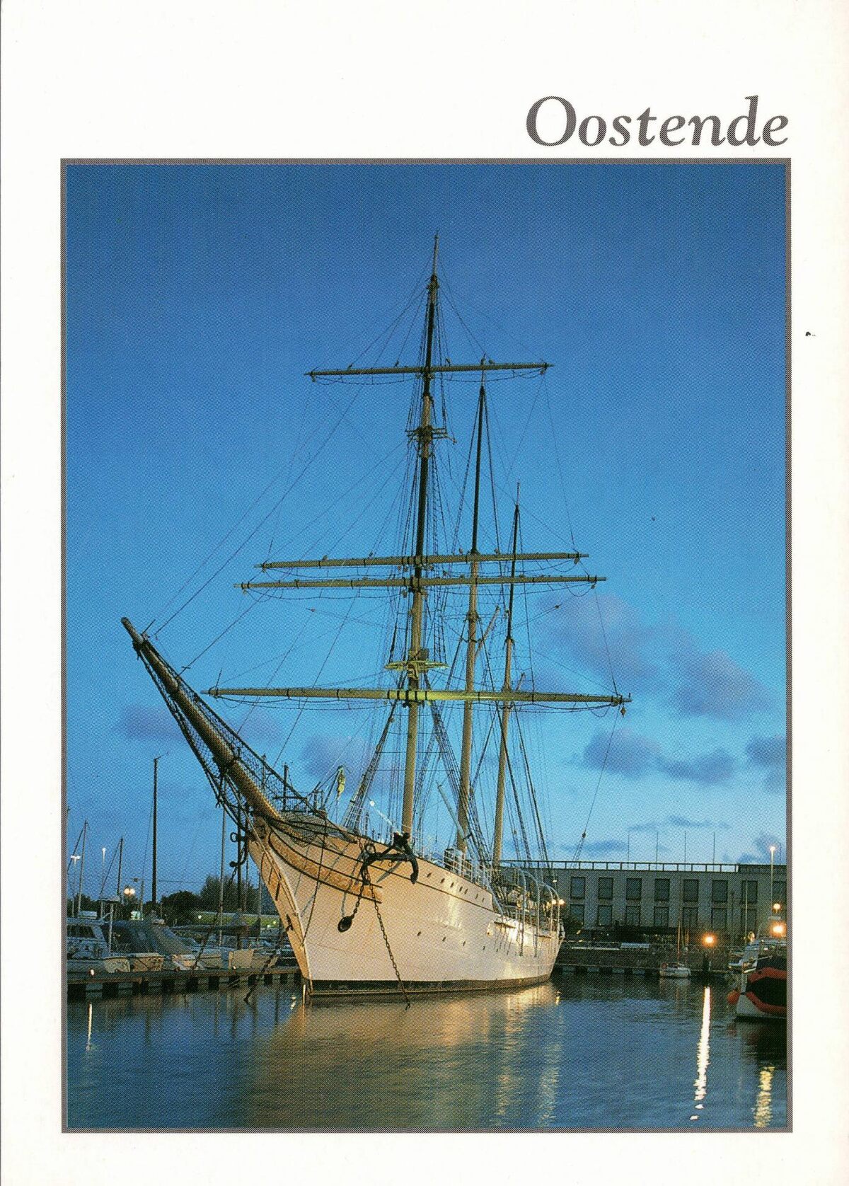 AVM, N° A.354. - Het zeil- en schoolschip "Mercator" als museaum in het tweede handelsdok of Mercator jachthvaven. Op de achtergrond, het Stadhuis langs de Leopold II-laan