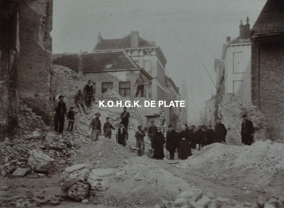 Onder foto : Travaux de démolitions des ruines de l’église de SS Pierre et Paul