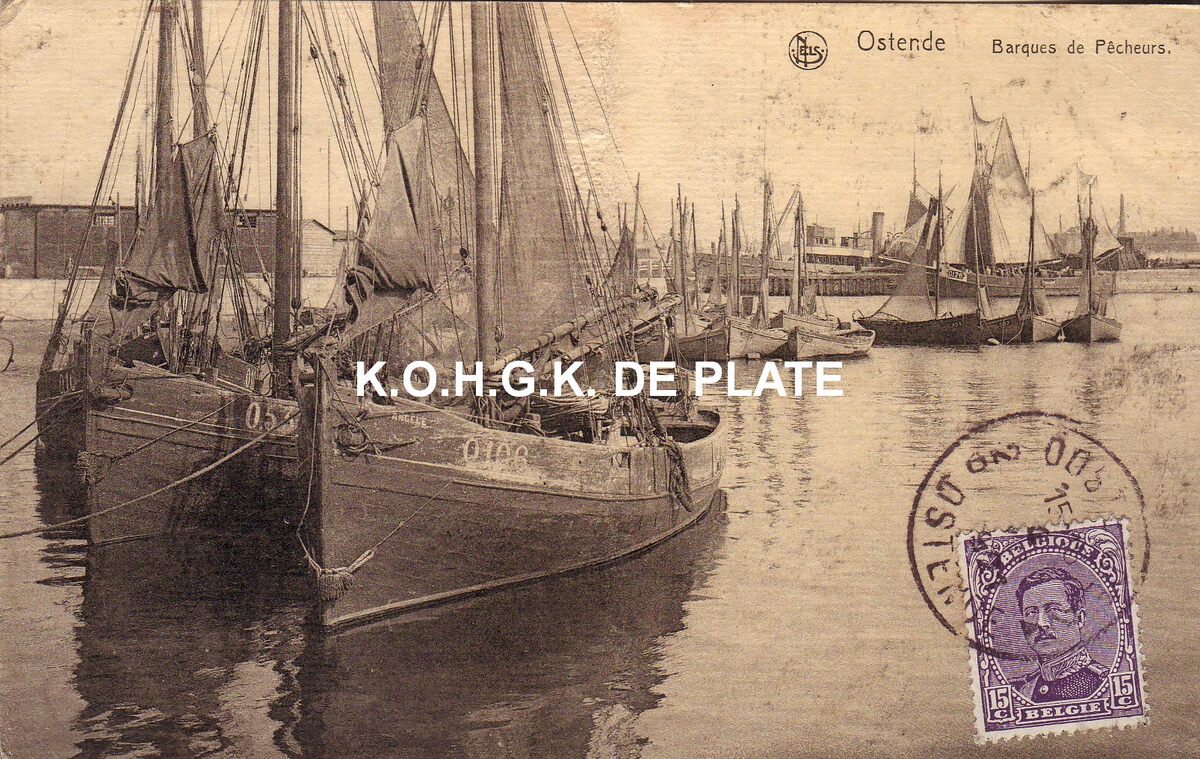 Nels. - Ostende - Barque de Pêcheurs. - Vooraan zien we twee éénmastsloepen, type "'t schipje" en op de achtergrond Oostendse schovers