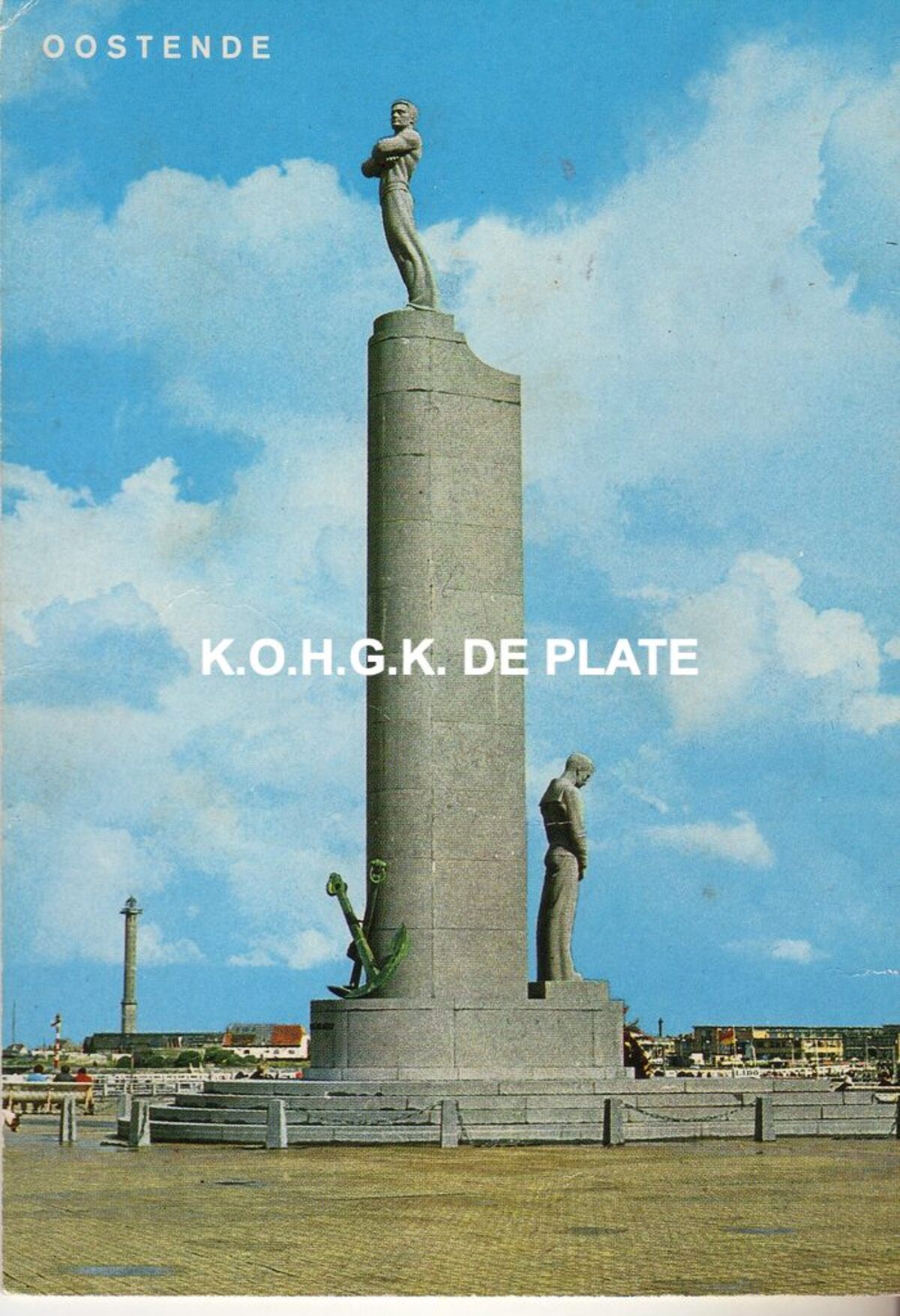 A.V.M. - Het Nationaal Monument voor de Zeelieden. Links, op de achtergrond, de vierde vuurtoren "Lange Nelle" op de oosteroever