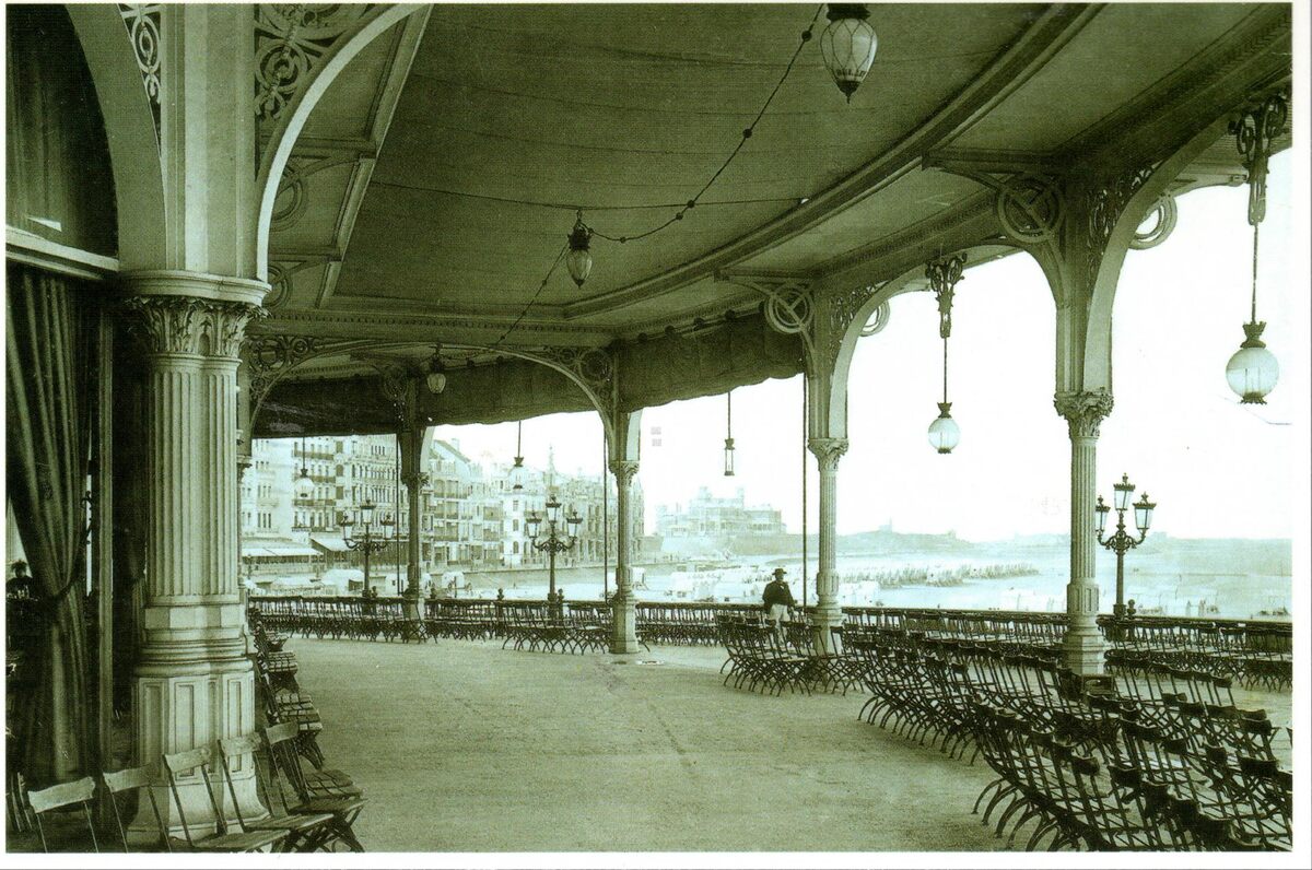 Tropic T 498. - Kursaal Oostende. - Detail van de open galerij van het derde Kursaal langs de noordgevel. We zien de Zeedijk, richting Koninklijk Chalet
