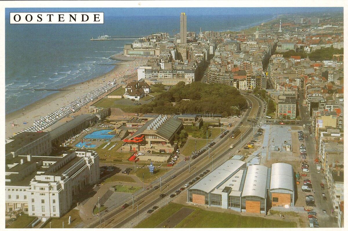 Tropic T 349. - Panorama van de omgeving van de Koningin Astridlaan. Rechts, bibliotheek Kris Lambert. Links, het Thermae Palace Hotel en ernaast het stedelijk zwembad. Wat verder de Koninklijke Villa en de Japanse tuin.