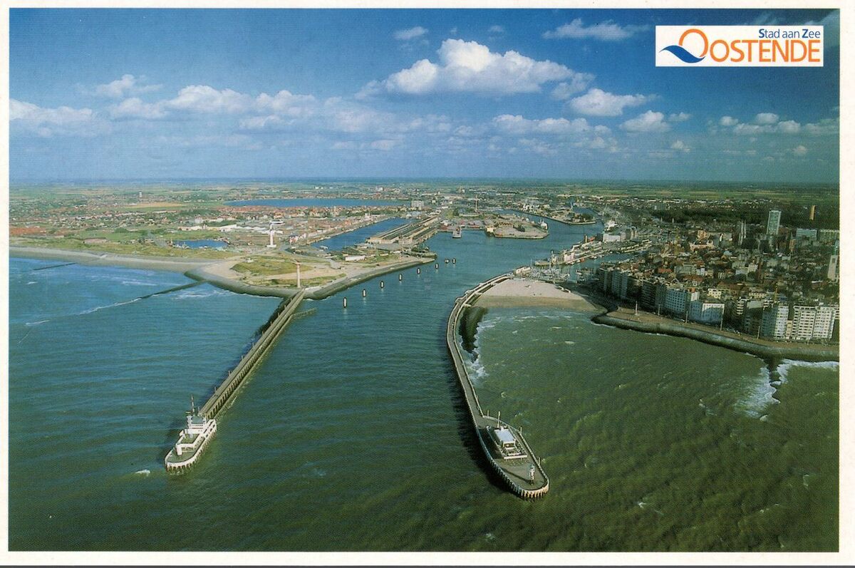 Tropic T 373. - (Oostende voor Anker). - Arial view of Ostend. - Panorama van de ingang van de havengeul. Rechts, het Klein Strand en de flagebouwen langs de Albert I-Promenade. Links, de Oosteroever en het Visserijdok