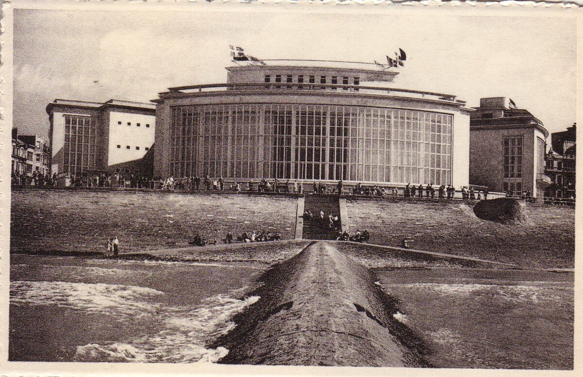 Nels. - De noordgevel van het vierde Kursaal langs de Albert I-promenade, gezien vanop een golfbreker op het Groot Strand