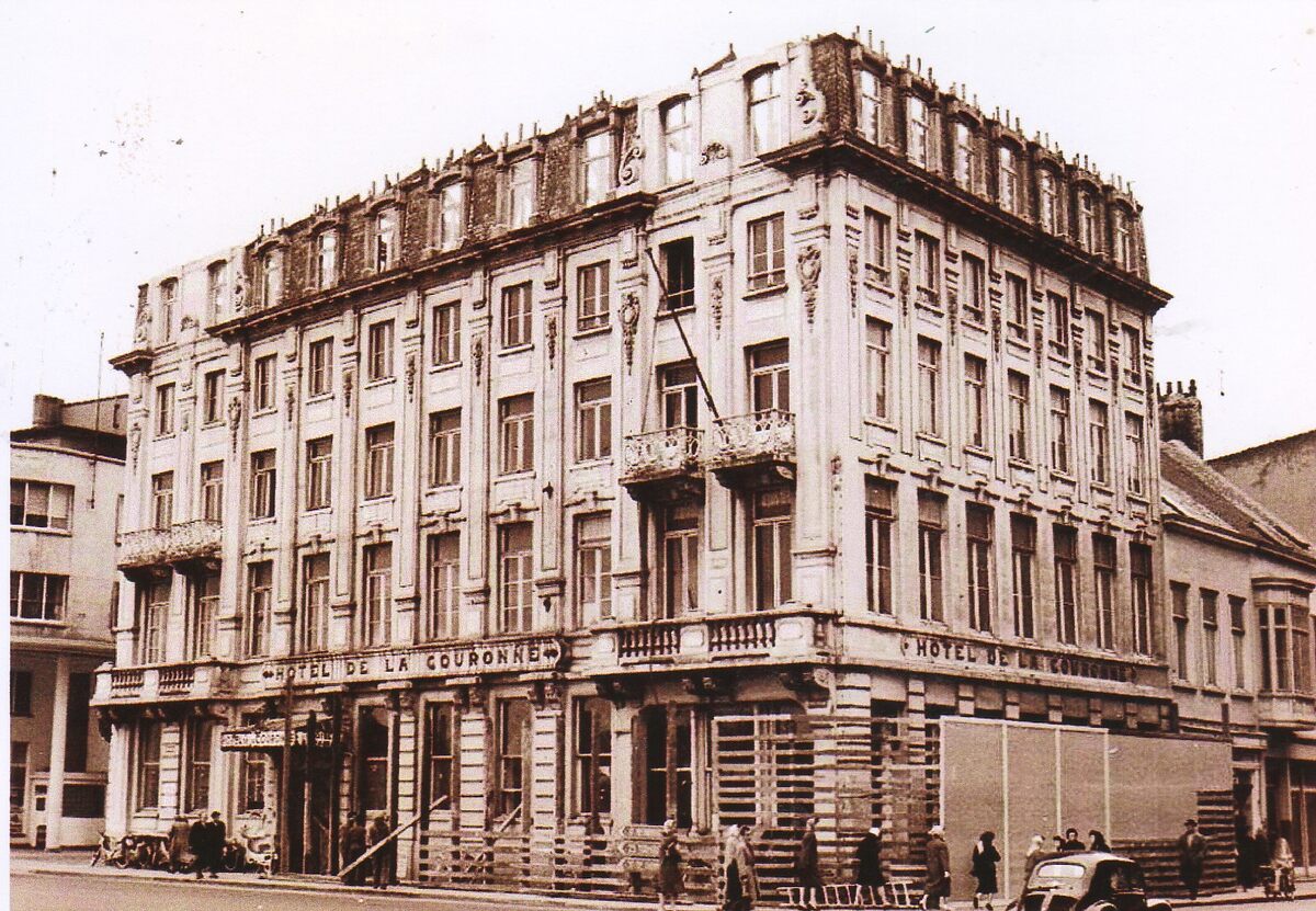 Formaat : 15 x 10 cm. - Het "Hôtel de la Couronne", hoek Vindictivelaan en Kapellestraat