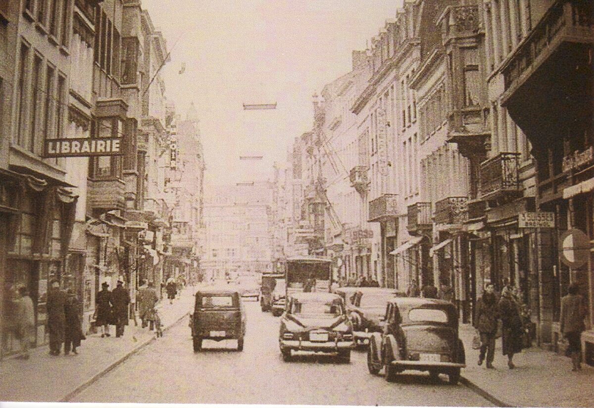 Formaat : 13 x 9 cm. - De Adolf Buylstraat, richting Wapenplein. Links, de bekende boekhandel "Corman"