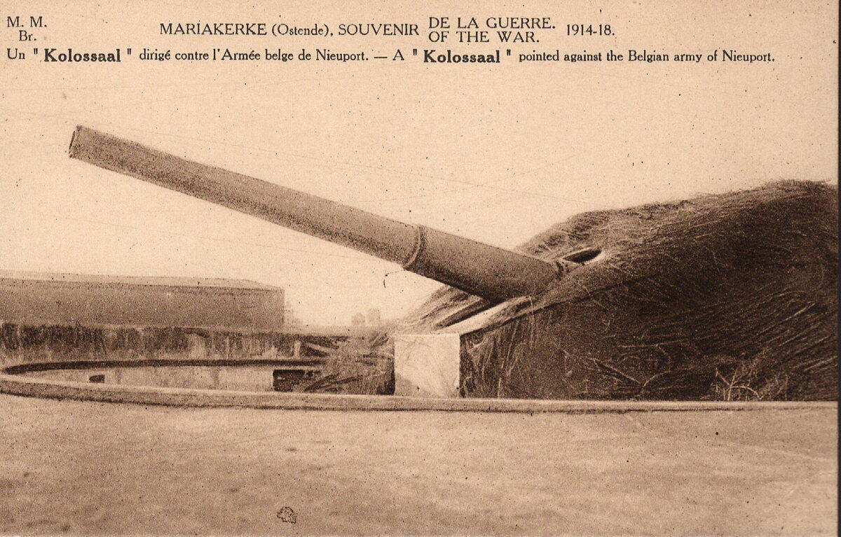 M.M.Br., Marco Marcovici, Bruxelles. - Mariakerke (Ostende) - Souvenir de la guerre = of the war 194-18. Un "Kolossaal" dirigé contre l'Armée belge de Nieuport. A "Kolossaal" pointed against the Belgian army of Nieuport.