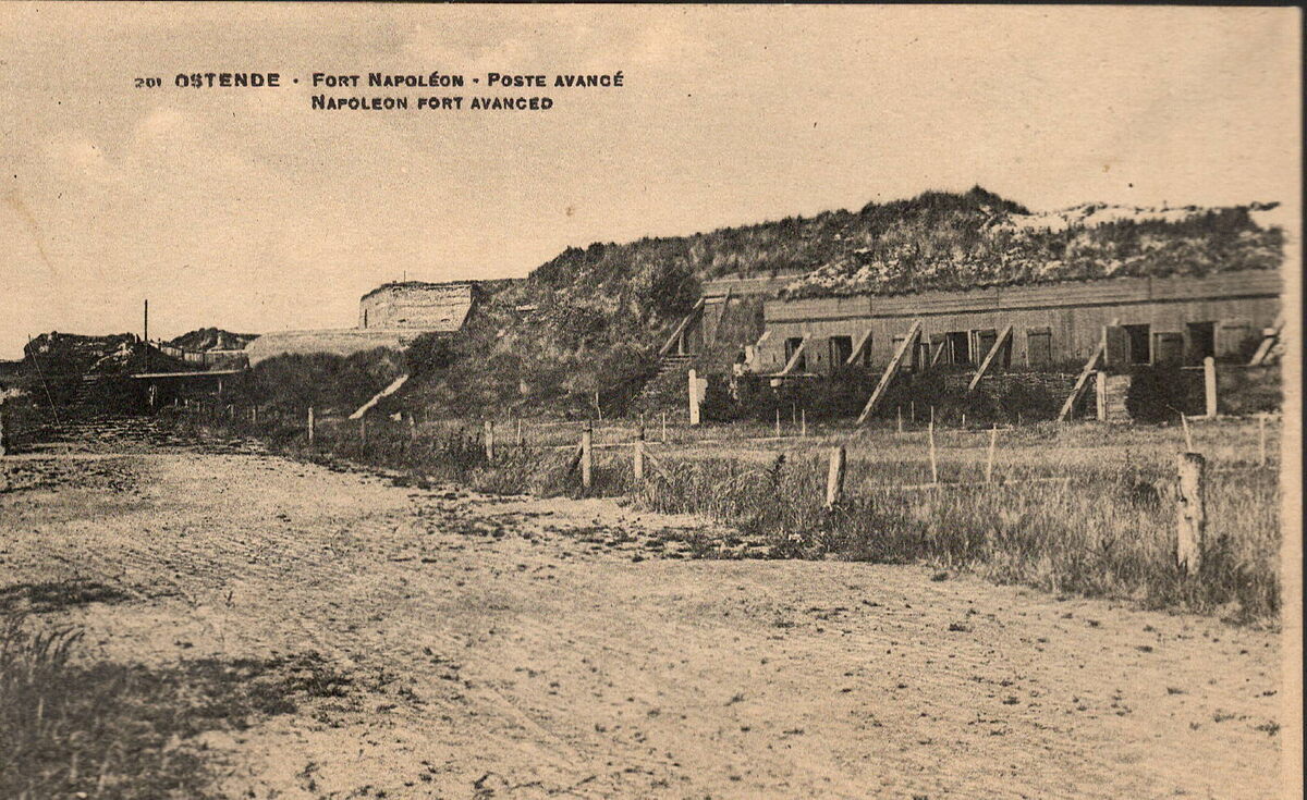 Nelson N° 201(?), Comptoir Artistique, 108, rue Victor Rauter, Bruxelles. - Ostende - Fort Napoléon. Poste avancé. Napoleon fort avanced. - Misleidende titel. De batterij Eylau was gelegen op de oosteroever dichtbij de haven op een gedeelte genaamd de "Halve Maan".
