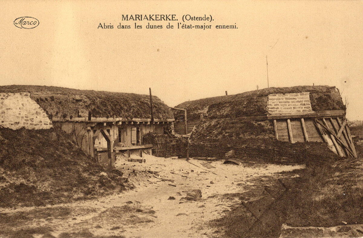 Marco. Ligue Nationale du Souvenir. 32, rue de Namur, Bruxelles. N'oublions jamais nos Héros et nos Martyrs. - Mariakerke (Ostende) - Abris dans les dunes de l'état-major ennemi.