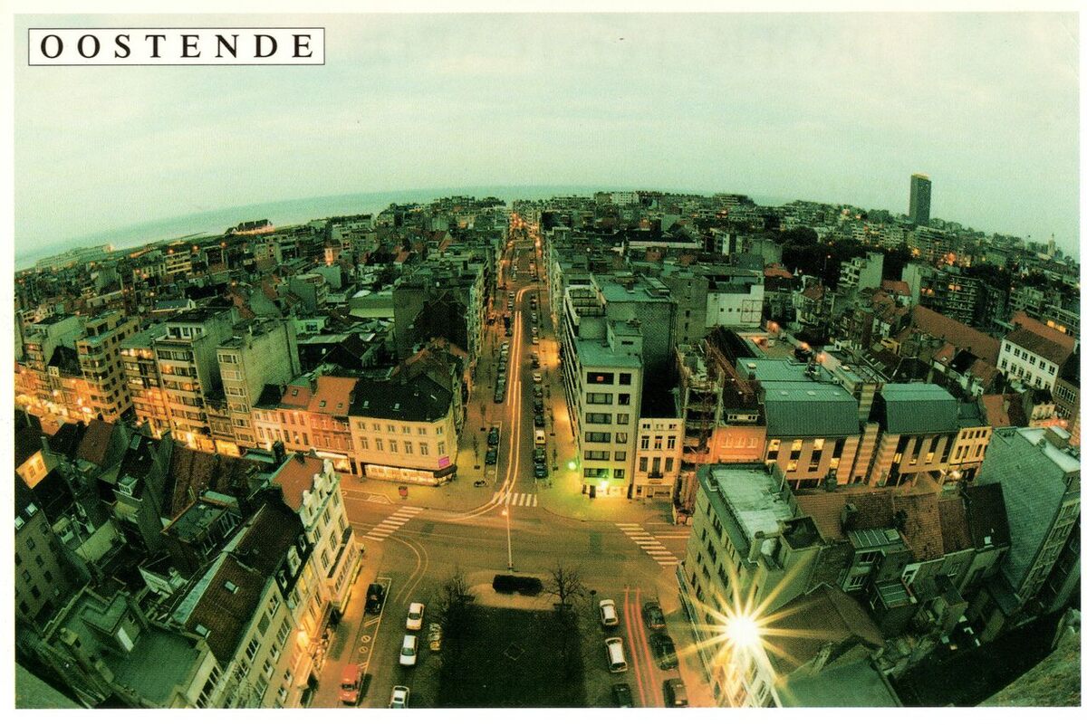 Tropic T 230. - Foto vanuit de Sint Jozefskerk. Links de Antwerpenstraat en rechts de Gentstraat en in het midden de Rogierlaan. De straat die dwars loopt is de Alfons Pieterslaan.