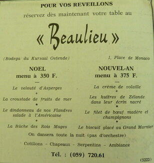 Advertentie : "Beaulieu". Bodega du Kursaal Ostende.
