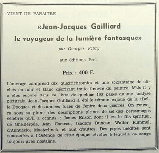 Advertentie : "Jean-Jacques Gailliard le voyageur de la lumière fantasque"