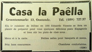 Advertentie : Casa la Paêlla. Groentemarkt 13, Oostende