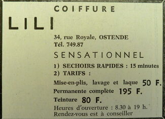 Advertentie : Coiffure Lili. 34, rue Royale, Ostende