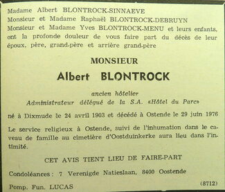 Advertentie : Doodsbericht Albert Blontrock