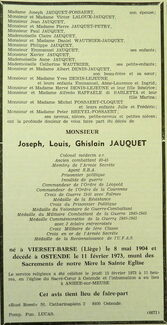 Advertentie : Doodsbericht Joseph Louis Ghislain Jauquet