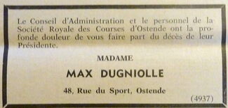 Advertentie : Doodsbericht Madame Max Dugniolle