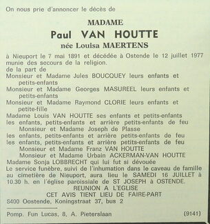 Advertentie : Doodsbericht madame Paul Van Houtte, née Louisa Maertens