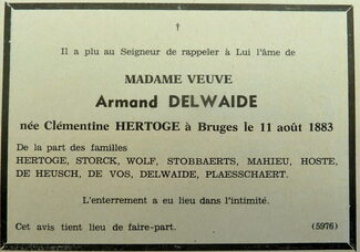 Advertentie : Doodsbericht Madame veuve Armand Delwaide, née Clémentine Hertoge