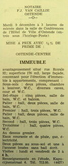 Advertentie : Etude du notaire F.J. Van Caillie. Vente publique. Immeuble. Rue Royale 92