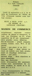 Advertentie : Etude du notaire F.J. Van Caillie. Vente publique. Maison de commerce. Rue Christine 57