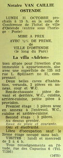 Advertentie : Etude du notaire F.J. Van Caillie. Vente publique. Villa "Adrien". Rue L. Spilliaert 51